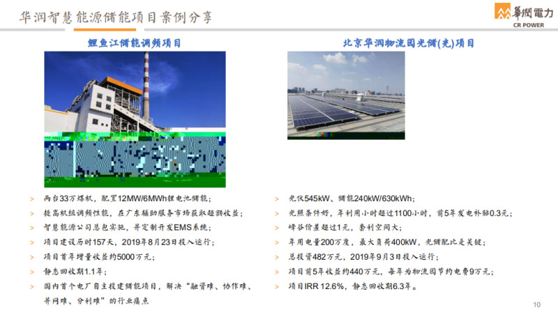儲(chǔ)能業(yè)務(wù)當(dāng)中,我們分享兩個(gè)案例,1、鯉魚(yú)江儲(chǔ)能調(diào)頻項(xiàng)目,湖南省郴州市,兩臺(tái)33萬(wàn)煤機(jī)火電機(jī)組,西電東送,配置了12MW/6MWh的鋰電池儲(chǔ)能,我們是負(fù)責(zé)了總包,提供了EMS系統(tǒng),一共是14個(gè)集裝箱,這個(gè)項(xiàng)目我們不想太多說(shuō)技術(shù)創(chuàng)新方面,我們采用的最常規(guī)的直流側(cè)低壓,PCS逆變升壓一體,技術(shù)上沒(méi)有太多創(chuàng)新的點(diǎn)。我覺(jué)得這個(gè)項(xiàng)目大家可以看到整效益還是非常好的,這個(gè)在廣東的市場(chǎng)放開(kāi)的初期,很多參與企業(yè)都有感受,回收期一到兩年左右,這個(gè)回收期引起了相關(guān)監(jiān)管部門(mén)的注意,現(xiàn)在在腰斬的節(jié)奏當(dāng)中。這個(gè)當(dāng)中我們是推動(dòng)了一件不太一樣的事情,前面展示的90%國(guó)儲(chǔ)項(xiàng)目是第三方投資,這是比較容易上馬項(xiàng)目的方式,這是項(xiàng)目推動(dòng)了電廠自主投資,我們作為兄弟公司的合作總包,這個(gè)形式解決了行業(yè)當(dāng)中的痛點(diǎn)問(wèn)題,比如說(shuō)融資難,我們?yōu)槭裁锤惺苓@么深刻,廣東四個(gè)廠都上了,另外三個(gè)廠上的速度很慢,很大部分是民企第三方投資的情況下拿不到錢(qián),第三方拿到項(xiàng)目,找錢(qián)的過(guò)程很難。他作為第三方跟電廠施工當(dāng)中的協(xié)作很困難,并網(wǎng)也困難,本來(lái)是對(duì)儲(chǔ)能接入是有一系列的標(biāo)準(zhǔn),很顯然很多儲(chǔ)能廠家對(duì)于電力系統(tǒng)對(duì)于調(diào)度,無(wú)論是關(guān)系上還是技術(shù)上,都是和我們長(zhǎng)期跟他們打交道的相比有一定的差距,所以我們電廠的非常容易的協(xié)調(diào)并網(wǎng),對(duì)于其他儲(chǔ)能獨(dú)立開(kāi)發(fā)商很難做到;分利難,我記得當(dāng)時(shí)是8:2,后來(lái)是五五分成,自己投資,所有收益都是自己,這也是收益為什么比其他項(xiàng)目要高一些,如果市場(chǎng)分的好的話(huà)可以獲得比較高額的利潤(rùn)。2、北京亦莊的華潤(rùn)物流產(chǎn)業(yè)園里面的光儲(chǔ)充一體的項(xiàng)目,這個(gè)項(xiàng)目回收期就長(zhǎng)了,要六七年時(shí)間,其實(shí)我最近跟很多的儲(chǔ)能同行交流的時(shí)候,也一直在說(shuō),發(fā)電側(cè)火儲(chǔ)調(diào)頻的項(xiàng)目政策不穩(wěn)定,大家覺(jué)得沒(méi)有商業(yè)模式,用戶(hù)側(cè)有明確的商業(yè)模式,無(wú)論怎么說(shuō),廣東腰斬也好,三分之一也好,電源側(cè)配儲(chǔ)能的收益遠(yuǎn)遠(yuǎn)高于用戶(hù)側(cè),北京的峰谷差1塊1,北京、江蘇、上海怎么做,按18年周期來(lái)算,也就是中規(guī)中矩的投資項(xiàng)目,但是電源側(cè)在很多的省份里面還是有很多的機(jī)會(huì)。所以后續(xù)在華南地區(qū)開(kāi)發(fā)新的項(xiàng)目的時(shí)候,一開(kāi)始的時(shí)候如果先上有一定的新發(fā)優(yōu)勢(shì)。