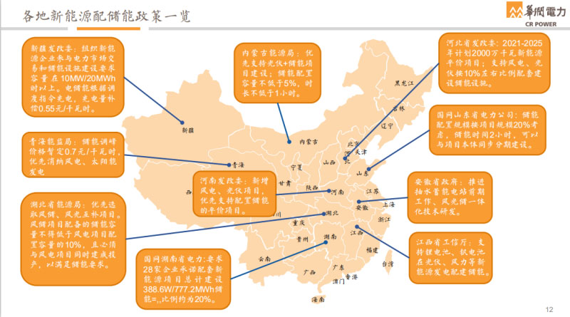 對(duì)風(fēng)儲(chǔ)方面推動(dòng)了安徽省兩個(gè)項(xiàng)目,在安徽淮北開(kāi)發(fā)了10萬(wàn)的風(fēng)電,當(dāng)時(shí)為了保證不棄風(fēng)棄光,風(fēng)電項(xiàng)目接入需要排隊(duì)到2021年,所以我們提出來(lái)通過(guò)省網(wǎng),獲取并網(wǎng)接入準(zhǔn)和,后來(lái)就20%一個(gè)小時(shí),這樣的儲(chǔ)能系統(tǒng),獲得了電網(wǎng)提前接入的批復(fù),拿到高的電價(jià),這是商業(yè)模式,后來(lái)中標(biāo)了一個(gè)貴州電建EPC的項(xiàng)目,這個(gè)項(xiàng)目沒(méi)什么好說(shuō)的,低價(jià)中標(biāo),我們從招標(biāo)的結(jié)果來(lái)看,風(fēng)儲(chǔ)的價(jià)格的遠(yuǎn)遠(yuǎn)低于火儲(chǔ),這類(lèi)項(xiàng)目完全是成本端,第一個(gè)并網(wǎng)風(fēng)電都已經(jīng)并網(wǎng)了,儲(chǔ)能集裝箱也像花瓶,也沒(méi)有任何說(shuō)法,大家就是要配,包括后來(lái)從安徽到了山東、河北、河南,全國(guó)各地陸陸續(xù)續(xù)出臺(tái)了用電配儲(chǔ)能的政策,有指導(dǎo)性10%,也有2個(gè)小時(shí),但沒(méi)有說(shuō)怎么去調(diào)用甚至是怎么考核,說(shuō)得非常少。我們也對(duì)新能源配套儲(chǔ)能的市場(chǎng)價(jià)格做了公開(kāi)數(shù)據(jù)的整理,一個(gè)小時(shí)的系統(tǒng)單位瓦時(shí)1.7,兩個(gè)小時(shí)是1.9塊。
