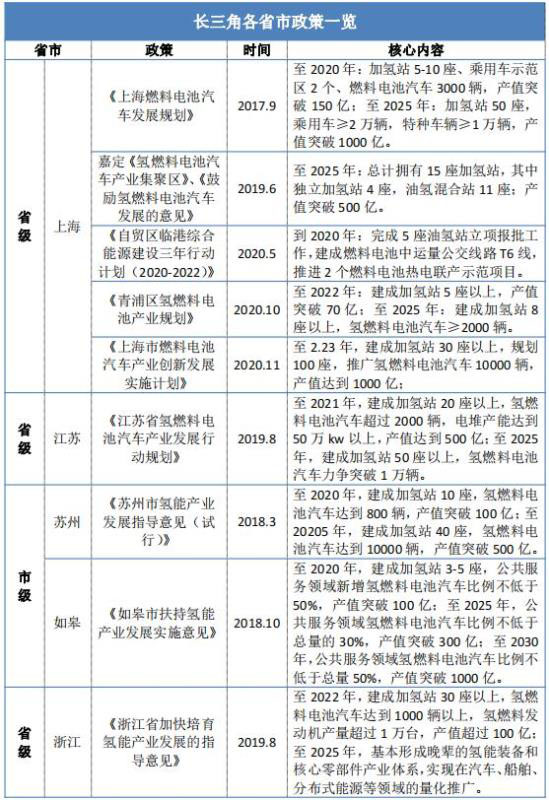 本文從政策規(guī)劃、產(chǎn)業(yè)鏈上中下游企業(yè)布局、基礎(chǔ)設(shè)施建設(shè)情況、產(chǎn)業(yè)園建設(shè)情況以及燃料電池汽車運(yùn)營情況等方面梳理了長三角地區(qū)的氫能產(chǎn)業(yè)現(xiàn)狀。