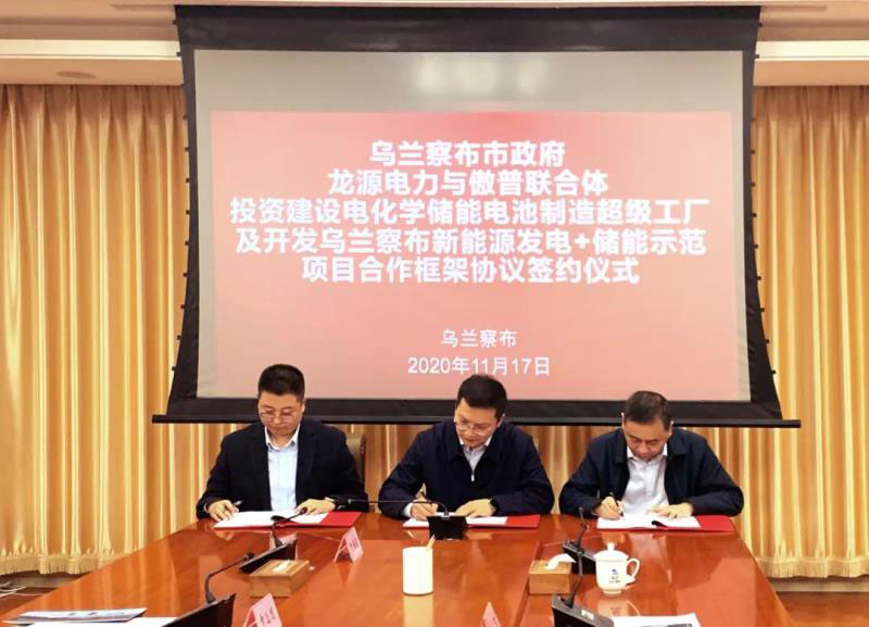 中國儲能網訊:2020年11月17日,龍源電力集團股份有限公司(以下簡稱“龍源電力”)、傲普(上海)新能源有限公司(以下簡稱“傲普能源科技”)與烏蘭察布市政府簽訂合作框架協議。根據協議,龍源電力將攜手傲普在烏蘭察布投資建設電化學儲能電池制造超級工廠,并開發(fā)烏蘭察布新能源發(fā)電+儲能示范項目。