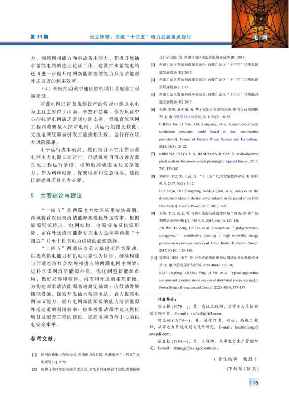 張立鋒, 何志強, 張金枝. 西藏“十四五”電力發(fā)展重點探討[J]. 中國電力, 2020, 53(11): 111-115, 138.