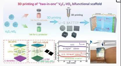 Jingsheng Cai, et al, 3D Printing of a V8C7-VO2 Bifunctional Scaffold as an Effective Polysulfide Immobilizer and Lithium Stabilizer for Li–S Batteries, Adv. Mater. 2020