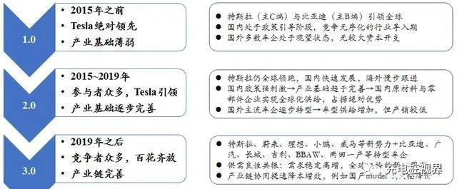 新能源汽車替代傳統(tǒng)燃油車趨勢不可逆轉(zhuǎn),從傳統(tǒng)機(jī)械硬件定義汽車轉(zhuǎn)向軟件定義汽車,電動車是未來汽車智能化、網(wǎng)聯(lián)化的重要載體,其意義重大。汽車產(chǎn)業(yè)變遷將伴隨產(chǎn)業(yè)鏈的價值轉(zhuǎn)移,重視前段研發(fā)設(shè)計、技術(shù)升級與后端軟件溢價,新能源汽車行業(yè)目前處于百花齊放電動化3.0 時代,全球供應(yīng)鏈細(xì)分龍頭迎來中長期α 投資機(jī)會。