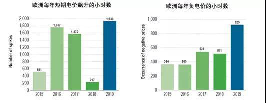 圖6 歐洲每年短期電價飆升和負電價的小時數(shù)