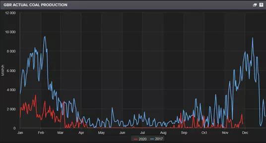 圖4 2017年和2020年英國燃煤電廠日均出力功率(MW)