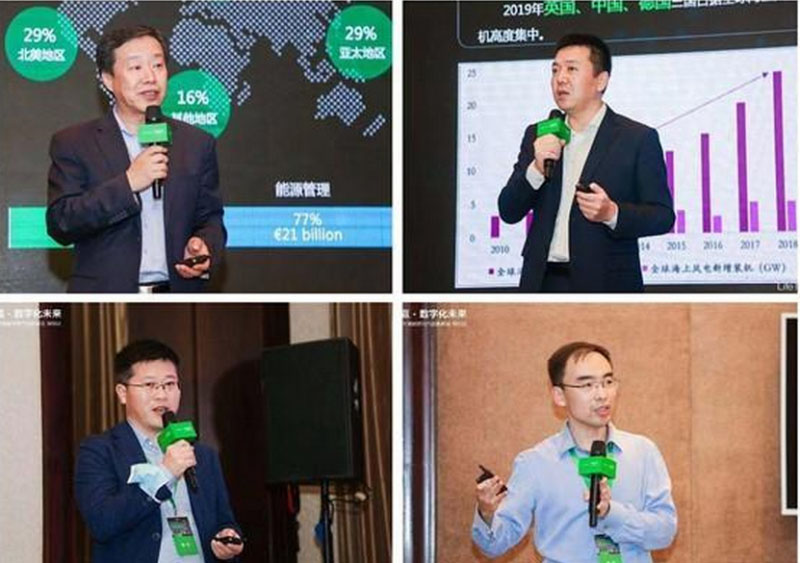 嘉賓演講 (左上:施耐德電氣中國區(qū)副總裁李繼敏,左下:中國化學(xué)與物理電源行業(yè)協(xié)會(huì)儲(chǔ)能應(yīng)用分會(huì)秘書長劉勇,右上:施耐德電氣能效管理低壓業(yè)務(wù),行業(yè)市場及應(yīng)用部門負(fù)責(zé)人趙天意,右下:北京鑒衡認(rèn)證中心風(fēng)能事業(yè)部總經(jīng)理張宇)