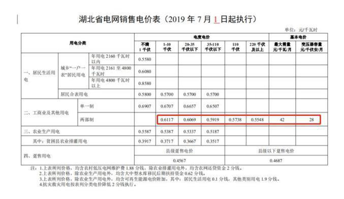 此次電價(jià)調(diào)整和2019年湖北省電網(wǎng)輸配電價(jià)和銷(xiāo)售電價(jià)相比,工商業(yè)及其他用電容(需)量電價(jià)和電度電價(jià)均有所下降。