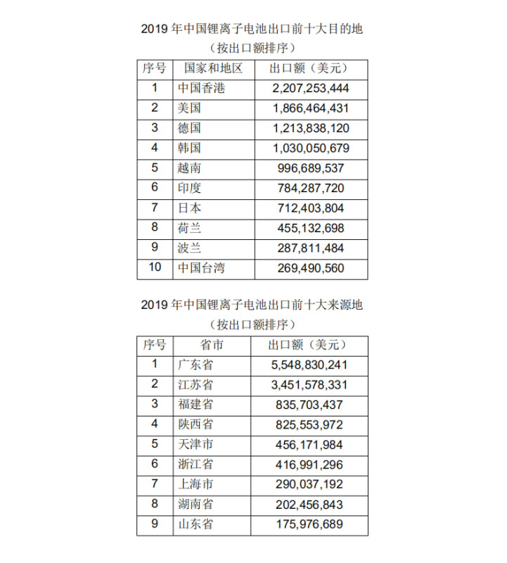 2019年中國鋰離子電池出口百強企業(yè)名單