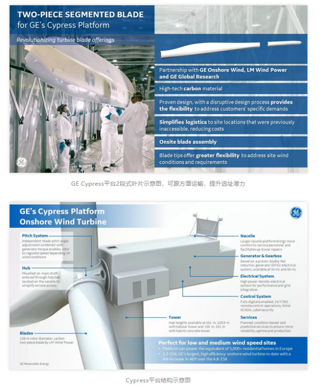 6MW Cypress 陸上平臺(tái)的研發(fā),充分利用了GE的各種資源,由GE陸上風(fēng)電業(yè)務(wù)部門、GE全球研究中心和LM Wind Power合作開發(fā)。
