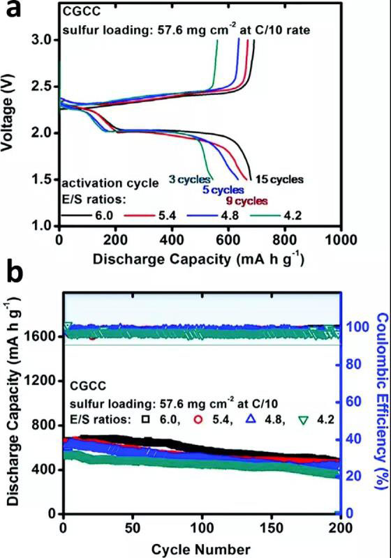 3. 低電解質(zhì)/硫比和高硫負載對實現(xiàn)高能量密度的重要性