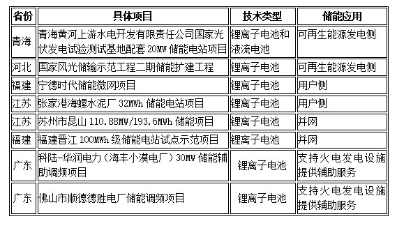 國家能源局公示的首批科技創(chuàng)新(儲能)試點示范項目清單