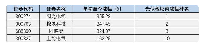 從資本市場來看,光伏設備指數年內熱度較高,年初至今漲幅達到122.05%,在申萬三級分類指數中排名第二。值得注意的是,在光伏板塊中與龍頭組件、光伏輔材廠商相比,光伏逆變器主要廠商近期的關注度相對較低,但其年內漲幅卻在板塊內遙遙領先,具體情況如下: