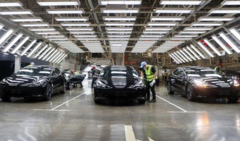 工作人員在特斯拉上海超級工廠內(nèi)作業(yè)(11月20日攝)。新華社