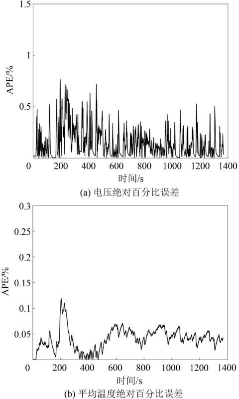 圖8 UDDS工況電壓、平均溫度絕對百分比誤差對比