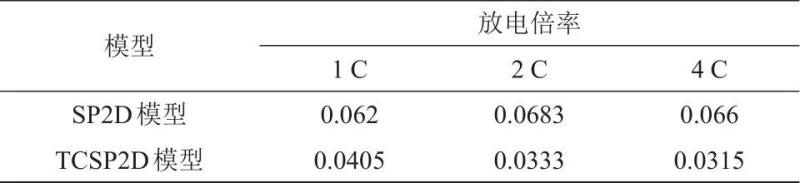 表5展示了兩種模型與P2D模型端電壓的均方根誤差(root mean square error,RMSE),可以看出TCSP2D模型在計(jì)算精度上有一定提升。