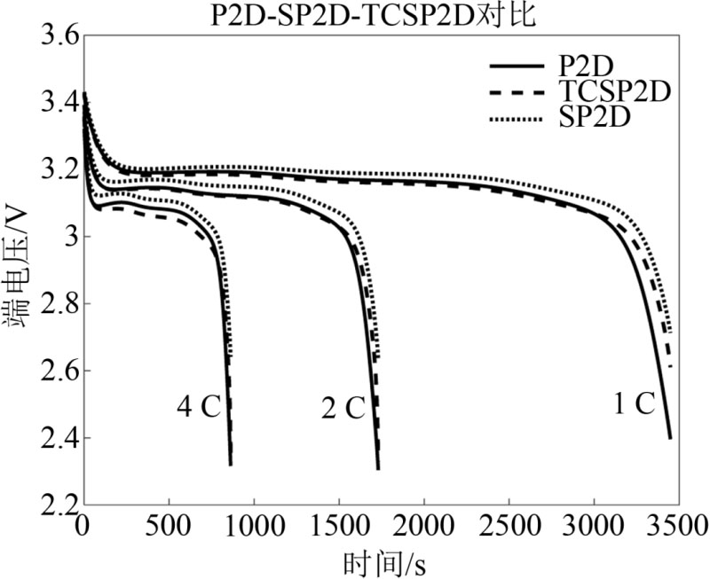 綜上所述,SP模型最簡單,計(jì)算速度最快;P2D模型計(jì)算最準(zhǔn)確,耦合熱模型更費(fèi)時(shí);TCSP2D模型運(yùn)算在高倍率放電下精度較高,運(yùn)算時(shí)間大大減小,對于投入到實(shí)際應(yīng)用中非常有意義。
