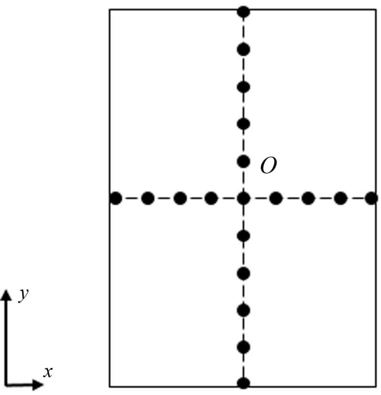 電池厚度z對于長寬可忽略不計(jì),圖3中的三維電池模型可簡化為圖4中的平面模型,假設(shè)電池散熱條件一致,電池的溫度場呈對稱分布,由于電化學(xué)模型中需要的是電芯的平均溫度,本文再做一次簡化,電池平均溫度可化為:過O兩條中心線的一維熱模型所求出各點(diǎn)溫度的平均解。