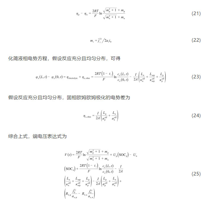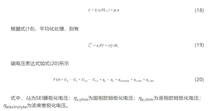 下述的電化學(xué)模型用來描述單體電池內(nèi)部的反應(yīng)過程,可以計(jì)算電池體的產(chǎn)熱速率;熱模型可以描述電池體的熱傳導(dǎo)過程,計(jì)算電池體的溫度。