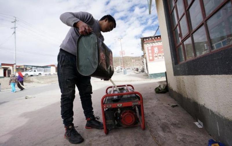 在西藏阿里地區(qū)普蘭縣巴嘎鄉(xiāng)崗莎村,一家飯店的工作人員準備用發(fā)電機發(fā)電(11月29日攝)。新華社記者 詹彥 攝