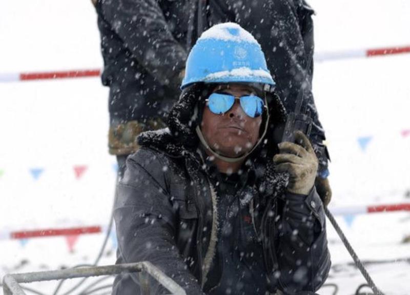 “施工人員服用保護心臟的藥,背著氧氣瓶上到山頂,工作時心跳一直保持在每分鐘120次以上,一個小時就得輪班下來?!弊T晉說,山頂?shù)奶鞖庾兓脽o常,有時晴朗,強烈的紫外線照得大家滿臉水泡;有時一場大雪,有的工人會瞬間雪盲。