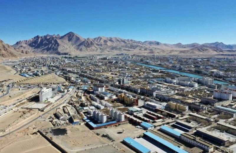 西藏阿里地區(qū)噶爾縣獅泉河鎮(zhèn)全景(12月2日攝,無人機照片)。 新華社記者 詹彥 攝