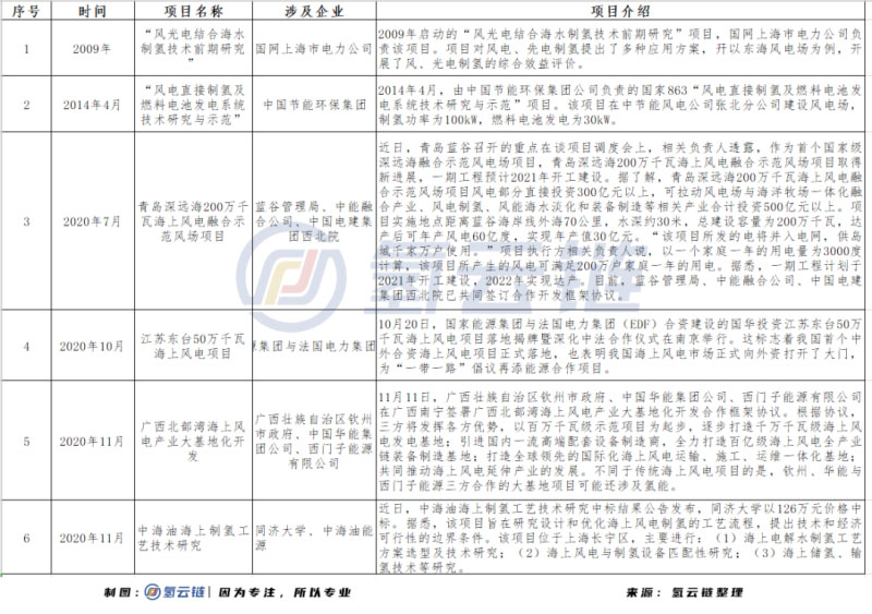 2、我國(guó)海上風(fēng)電制氫項(xiàng)目
