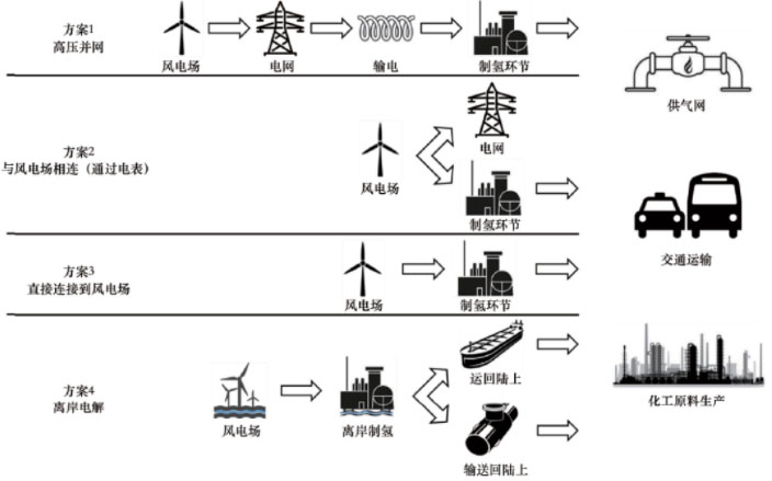 利用海上風(fēng)電制備氫氣,并通過各類儲(chǔ)運(yùn)技術(shù)送到氫能源市場(chǎng),開發(fā)跨越電力輸送的渠道,為海上風(fēng)電發(fā)展提供了可行的思路。