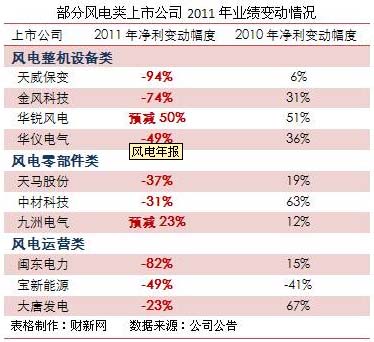 中國儲能網(wǎng)訊:金風(fēng)科技(002202.SZ/02208.HK)上周公告2011年業(yè)績較上年下滑74%,尚未公布2011年報的另一風(fēng)電行業(yè)龍頭華銳風(fēng)電(601558.SH),已預(yù)告去年業(yè)績下降超50%,整機和葉片制造廠商天威保變(600550.SH)上周公告2011年業(yè)績同比下滑94%。風(fēng)電行業(yè)去年整體業(yè)績下滑與2010年普遍增長的態(tài)勢形成強烈對比。