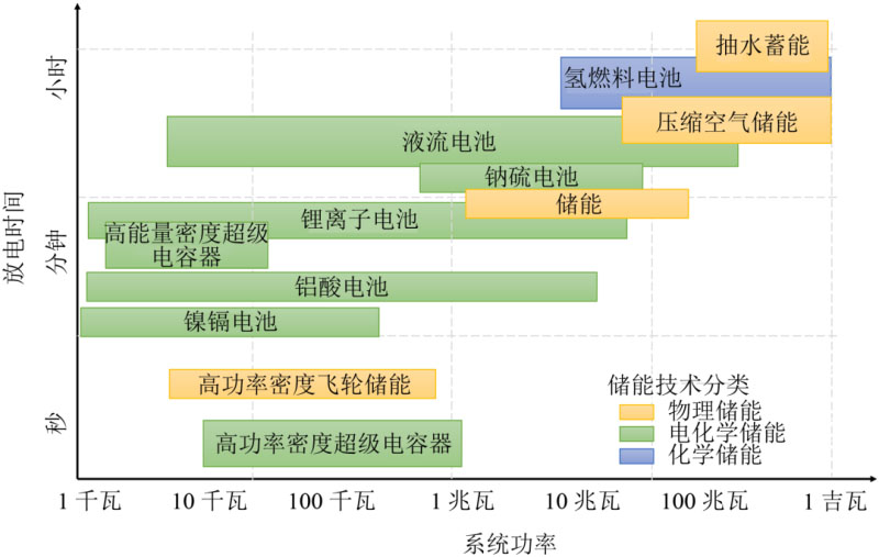 圖1 各儲(chǔ)能技術(shù)的功率和放電速率