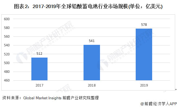 全球鉛酸蓄電池的市場規(guī)模持續(xù)增長,2019年市場規(guī)模達578億美元