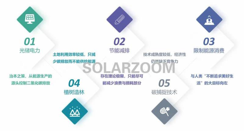 在SOLARZOOM新能源智庫看來,2060碳中和的最終實(shí)現(xiàn)方法不僅僅是風(fēng)光儲(chǔ)和植樹造林,還包括節(jié)能減排、限制能源消費(fèi)、碳捕捉技術(shù)。但在實(shí)現(xiàn)2060碳中和的5大方法中,確實(shí)是風(fēng)光儲(chǔ)和植樹造林的效果最好。這與習(xí)總書記的講話內(nèi)容高度一致。