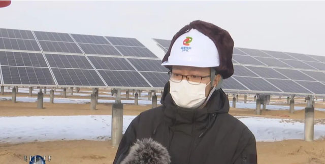 在我們西北角,現(xiàn)在目前已經(jīng)準(zhǔn)備在這做草方格治沙、固沙,然后所有的光伏板下面都還要撒草籽,還要間隔的種一些臨間草、樹木,就是到投產(chǎn)兩年到三年之后,這個現(xiàn)有的是沙漠狀態(tài)的話,到后期我們就會全部是沙漠里頭的綠洲,每年碳排放量能夠減少三萬五千多噸的碳排放。