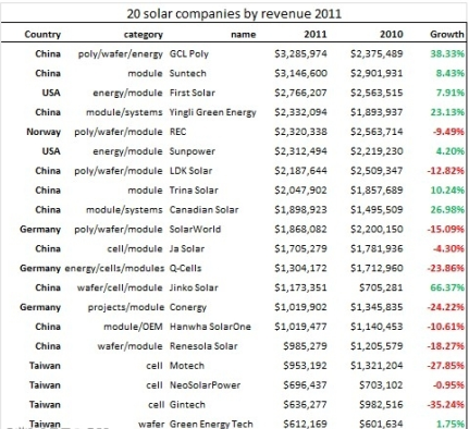 2011年光伏企業(yè)營收排列表