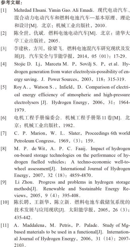 氫能汽車是一種典型的新能源汽車,其以氫為主要能量。一般內(nèi)燃機(jī)通常采用注入柴油或汽油的方法,而氫能汽車則改為采用H2。氫燃料電池則是用燃料電池和電動(dòng)車取代了一般的引擎。氫燃料電池借助電化學(xué)反應(yīng)將燃料(H2和O2)直接轉(zhuǎn)變成電能的一種原電池[1],該過程不涉及熱機(jī)做功和燃燒,不受卡諾循環(huán)的限制[2],轉(zhuǎn)化效率高。