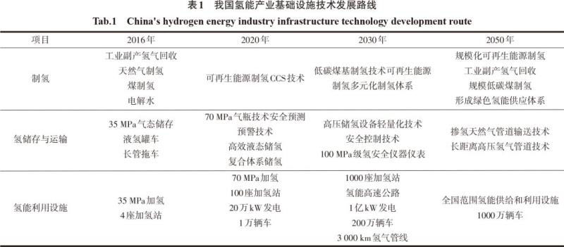 我國的氫能產(chǎn)業(yè)基礎(chǔ)設(shè)施技術(shù)發(fā)展路線見表1所示。