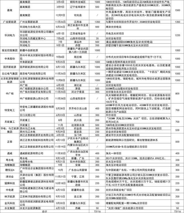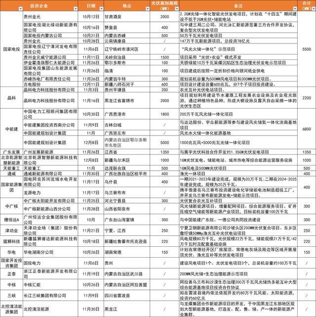 備注:上表匯總了自10月起各企業(yè)簽署擬投建的光伏項目情況,特別強調(diào)的是,因項目名單眾多,難免有疏漏,上述表格不做排名依據(jù),僅供讀者參考