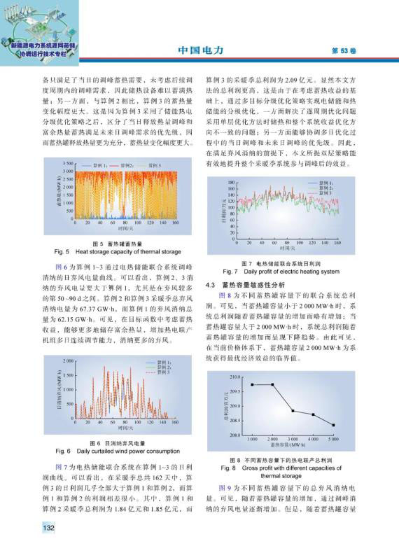 通過電儲能和熱儲能的分級優(yōu)化,區(qū)分電、熱能量品質的差異,能夠協(xié)調優(yōu)化電儲能和儲熱運行,充分利用儲熱設備的調節(jié)能力,為熱電聯(lián)產(chǎn)機組提前預留調峰空間,消納更多的棄風,增加調峰效益。與不考慮儲熱效益的單層優(yōu)化模型相比,本文所提方法能夠提升風電消納量8.4%,提高系統(tǒng)利潤13.6%。
