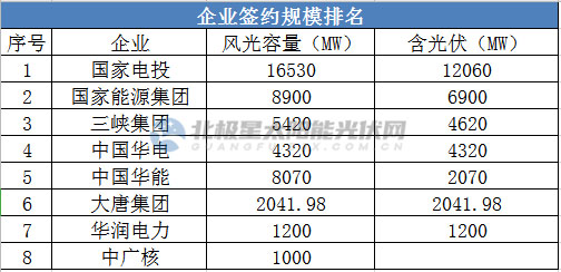(注:上表企業(yè)按明確光伏項目簽約規(guī)模排名,不包含風(fēng)光儲一體化、新能源項目規(guī)模;國投電力未找到簽約數(shù)據(jù))