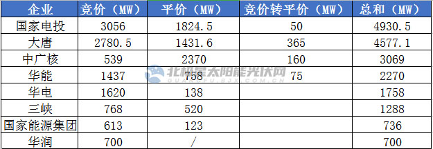 國家電投作為“五大四小”發(fā)電集團中的新能源主力,位列榜首,共拿下4.93GW競、平價項目規(guī)模,其中,競價項目3.06GW,平價項目(含競轉(zhuǎn)平)1.87GW。