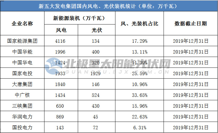 據(jù)北極星太陽能光伏網(wǎng)統(tǒng)計,截至2019年底,“五大四小”中8家風(fēng)光裝機占比已達(dá)總裝機的10%以上,其中國家電投、中廣核、華潤電力風(fēng)光裝機占比超20%。