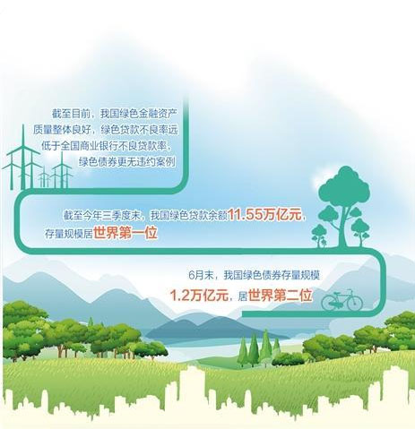 截至目前,我國綠色金融資產(chǎn)質(zhì)量整體良好,綠色貸款不良率遠(yuǎn)低于全國商業(yè)銀行不良貸款率,綠色債券更無違約案例。數(shù)據(jù)顯示,截至今年三季度末,我國綠色貸款余額11.55萬億元,存量規(guī)模居世界第一位;6月末,綠色債券存量規(guī)模1.2萬億元,居世界第二位。