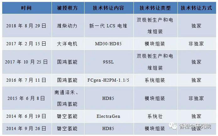 圖表3 巴拉德技術(shù)轉(zhuǎn)讓協(xié)議一覽