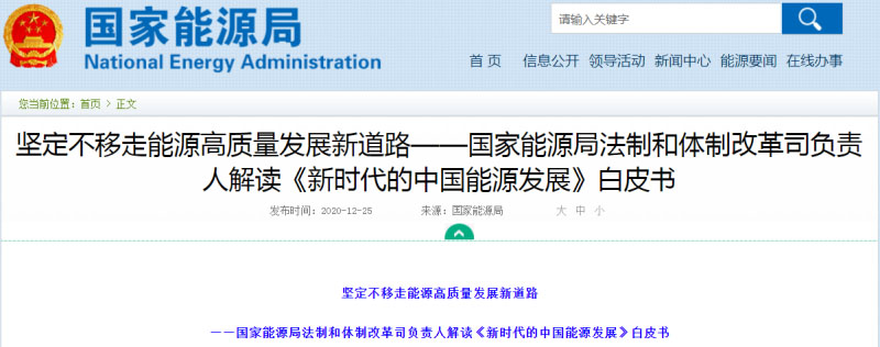 ——國(guó)家能源局法制和體制改革司負(fù)責(zé)人解讀《新時(shí)代的中國(guó)能源發(fā)展》白皮書(shū)