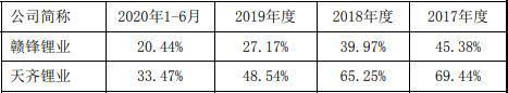業(yè)績不佳的背后是盈利能力的劇烈下滑。2017年至2020年前6個月,容匯鋰業(yè)毛利率分別為41.13%、29.38%、20.65%和2.71%,呈現(xiàn)明顯的逐年下降趨勢。
