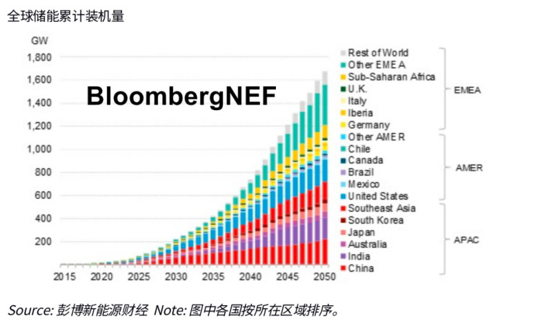 到2050年的儲(chǔ)能投資總規(guī)模