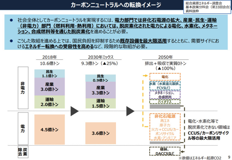 自2011年福島核電站災(zāi)難以來,日本這一世界第三大經(jīng)濟(jì)體仍然嚴(yán)重依賴煤炭和液化天然氣,其大部分核反應(yīng)堆都脫離工作狀態(tài)。而工業(yè)、交通和家庭部門的電氣化,預(yù)計(jì)到2050年日本的電力需求將比目前水平增長30%-50%,需要盡可能擴(kuò)大可再生能源來滿足需求。參考目標(biāo)是到2050年可再生能源占全國電力供應(yīng)的50%至60%,大大高于截至2020年3月的財(cái)政年度的18%。其余的電力將來自使用氫和燃料氨的發(fā)電廠,占電力的10%,而核能和具有碳捕獲技術(shù)的火力發(fā)電站將提供剩余的30%-40%。