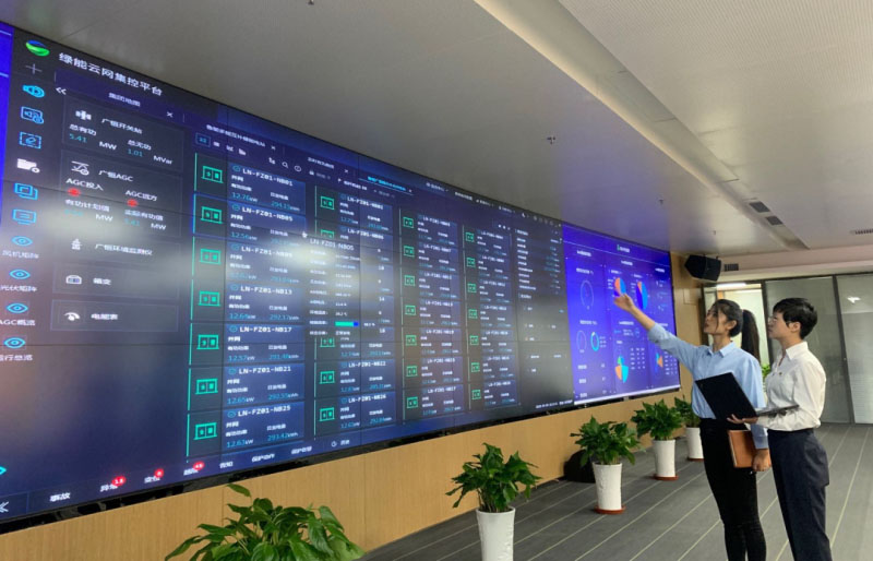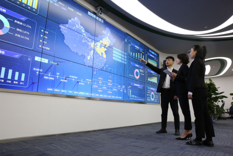▲國家電網員工通過國網新能源云平臺對新能源消納情況進行分析