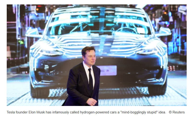 氫能的批評(píng)者把焦點(diǎn)放在成本問題上。生產(chǎn)純電池驅(qū)動(dòng)汽車的特斯拉將氫燃料電池視為一項(xiàng)競爭性技術(shù)。特斯拉的創(chuàng)始人埃隆·馬斯克認(rèn)為燃料電池是“傻瓜電池”,他稱氫動(dòng)力汽車是一個(gè)“令人難以置信的愚蠢”想法。
