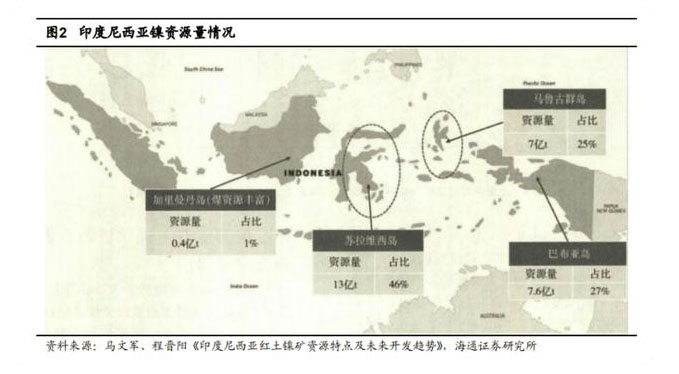 據(jù)海通證券分析師施毅11月24日報告整理,印尼鎳礦分布較為集中,主要在蘇拉威西島和附近島嶼,當(dāng)?shù)厝怂追Q大K島和小K島,前者占據(jù)整個印尼鎳資源的70-80%,而后者約20-30%。而小K島所屬省份即為此次項目建設(shè)地之一北馬魯古省。