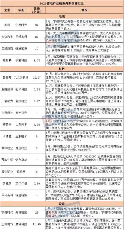 與往年相比,2020年鋰電產(chǎn)業(yè)鏈兼并購事件主要呈現(xiàn)以下特點: